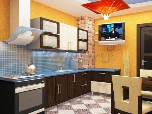 1) Угловой. Это хороший вариант для кухни, выполненной в стиле классицизма. К тому же такое решение великолепно подойдет для тех, кто весьма обожает процесс изготовление пищи и уделяет ему большое количество времени. При угловой расстановке мебель находится наиболее комфортно и компактно, исходя по этому хозяйке потребуется прикладывать минимальное колличество усилий для изготовление обеда, наведения порядка в помещении, ухода за мебелью. Такая расстановка мебели на кухне вероятна в большинстве квартир, это разрешает воспользоваться всеми преимуществами наличия дополнительной рабочей поверхности. Кроме этого имеется возможность находиться на кухне откидную гладильную доску и швейную машинку. Недостаток у для того чтобы размещения один — может потребоваться дополнительный источник освещения.