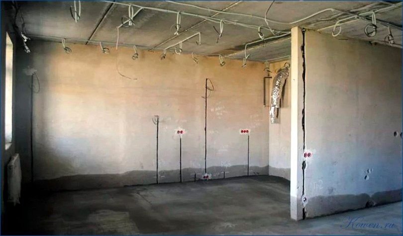 В случае если в новостройке нет стяжки пола и штукатурки стен, то стоит начать как раз с этого. Следующий этап — разводка электричества. Определитесь, где у вас в квартире будут розетки и выключатели. К этим точкам необходимо подвести электричество. Провода в большинстве случаев прокладываются в штробах в стенке или по потолку. Кое-какие, чтобы не штробить стенки со штукатуркой, сперва делают разводку электричества, а только после этого — штукатурку стен.
